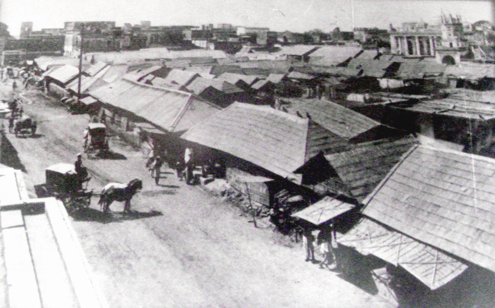 চকবাজার: ১৯০৮-এর চিত্র। ( ঢাকা কেন্দ্রীয় কারাগারের, বর্তমান স্থান )। মুর্শিদকুলি খান এর নাম রেখেছিলেন বাদশাহী বাজার।